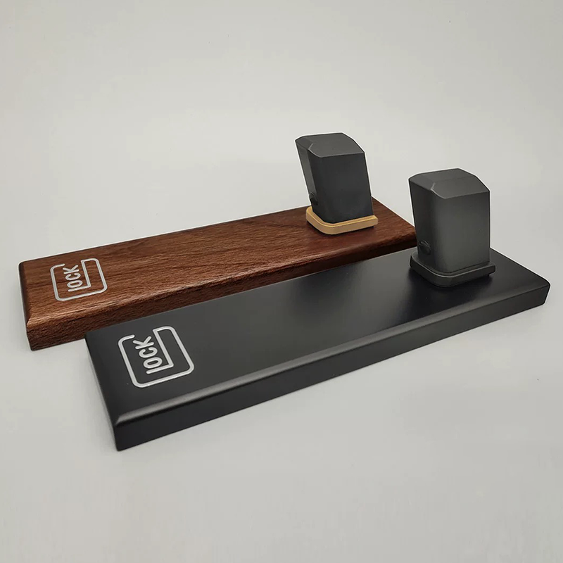 ガンスタンド ディスプレイスタンド 胡桃木/榉木 モデルガン エアガン 展示台 Glock互換 G17/G18/G19/G34/G45 TTI / SIG SAUER / Strike Industries コレクション用 卓上ディスプレイ