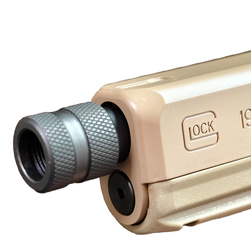 模立方製 G17/G19X/G19対応 アルミ合金製 アウターバレル サイレンサー/マズルブレーキ用変換アダプター マズルキャップ スチール製エジェクションポート